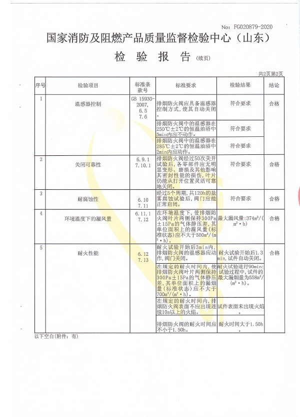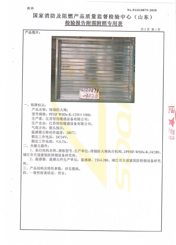 防火閥認(rèn)證證書2000X1000